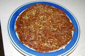 ونضع الخليط على شكل دوائر او شباكية في الزيت وتحمر لدقائق ثم ترفع وتوضع في الشيرة (القطر)
